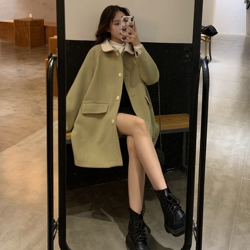 コート 長袖 ミドル丈 Aライン 襟付き シンプル 無地 大人カジュアル デート お出かけ 秋 冬