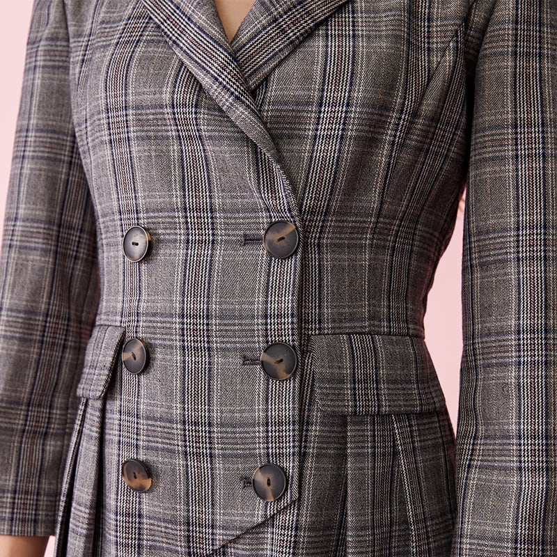 オールインワン ジャンプスーツ グレンチェック柄 大人カジュアル トラッド 長袖 デート お出かけ