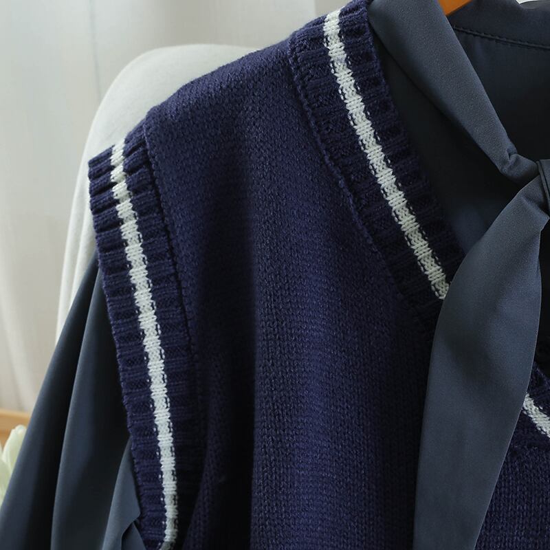 きれいめな無地デザインの長袖ブラウスとニットベストのセットです♪