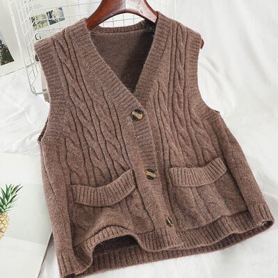 ベスト ニットベスト フロントボタン Vネック シンプル 無地 大人カジュアル デイリー 秋 冬