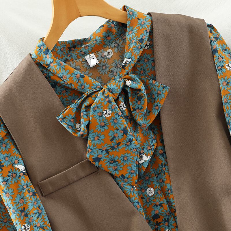 ツーピース セットアップ ワンピース 長袖 ミニ丈 プリーツ 小花柄 ベスト 大人可愛い デート お出かけ