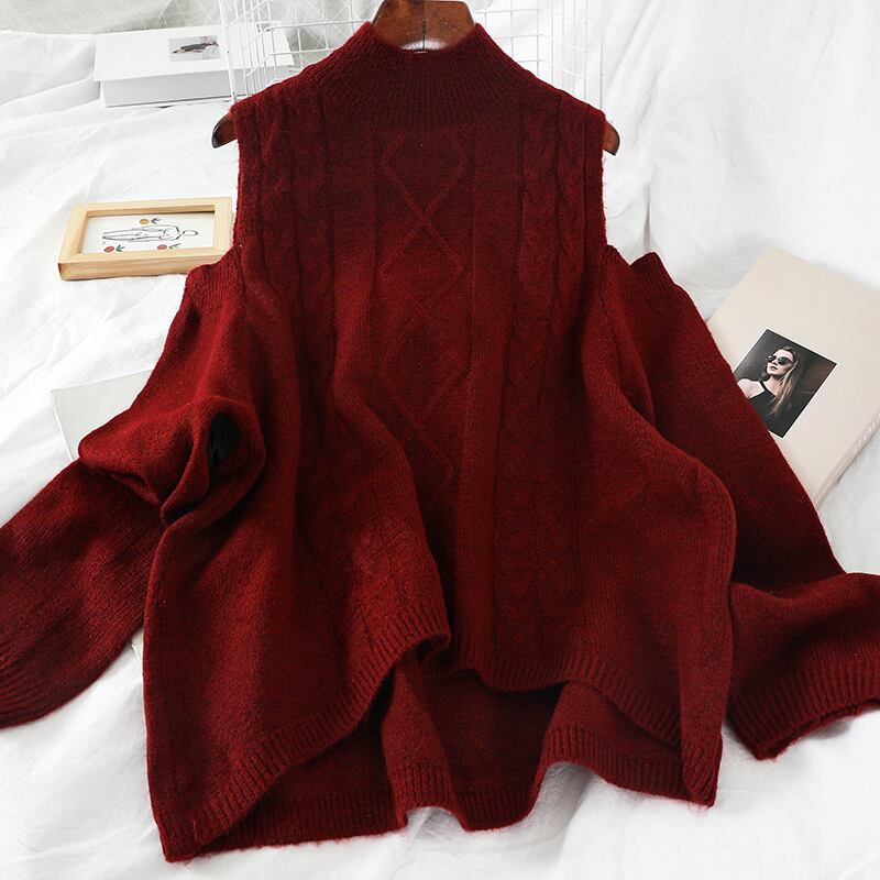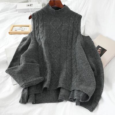 ニット セーター 長袖 肩出しデザイン シンプル 無地 大人カジュアル ゆったり お出かけ 秋 冬