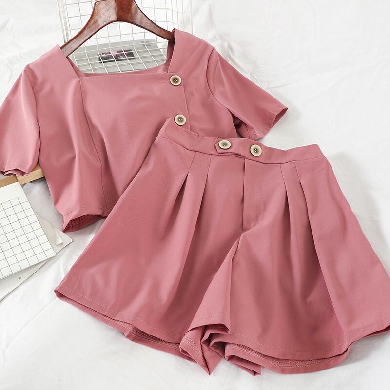 セットアップ ツーピース 半袖 ブラウス ショートパンツ シンプル 無地 大人カジュアル お出かけ