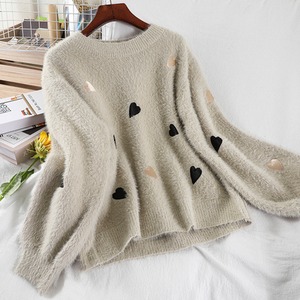 ニット セーター 長袖 モヘア ハート柄 大人可愛い ゆったり デート お出かけ 秋 冬
