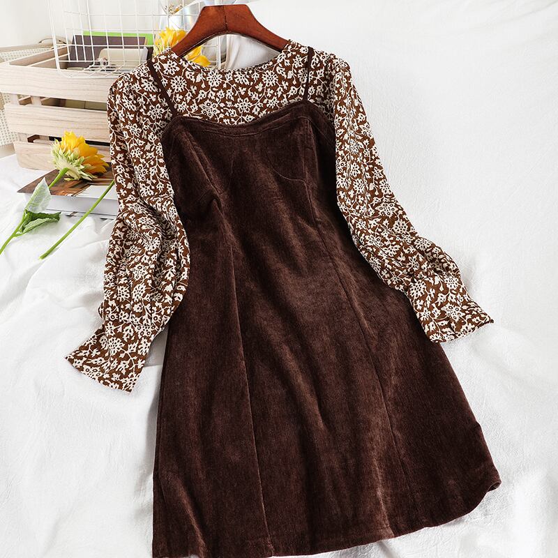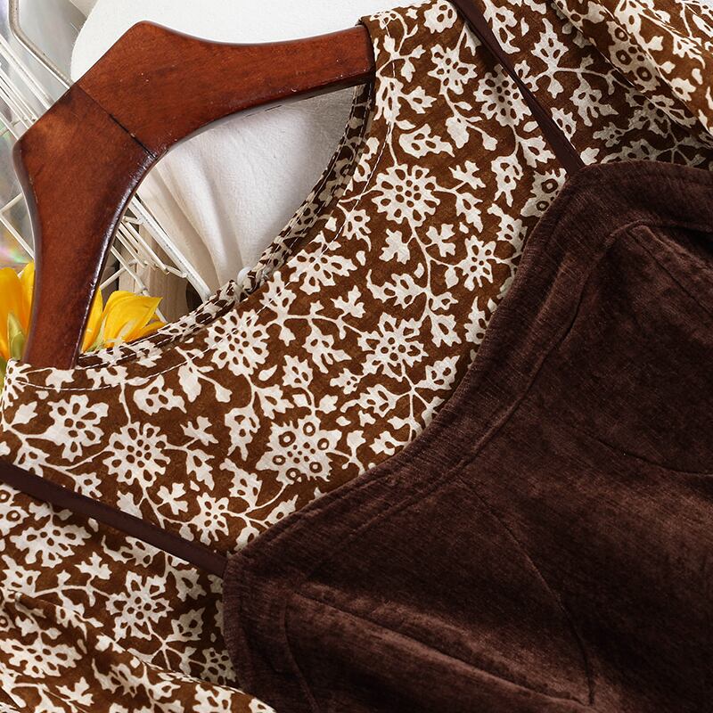 セットアップ ツーピース 長袖 カットソー 小花柄 ワンピース キャミソールワンピース ベロア デート