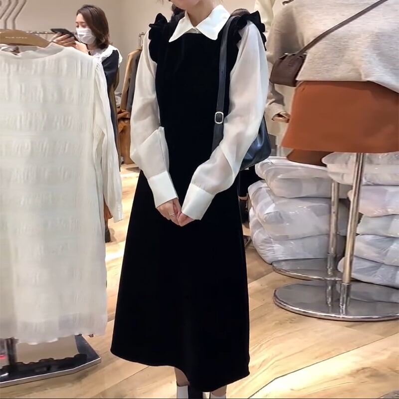 ワンピース ノースリーブ ミモレ丈 フレア フリル シンプル 無地 大人可愛い デート お出かけ
