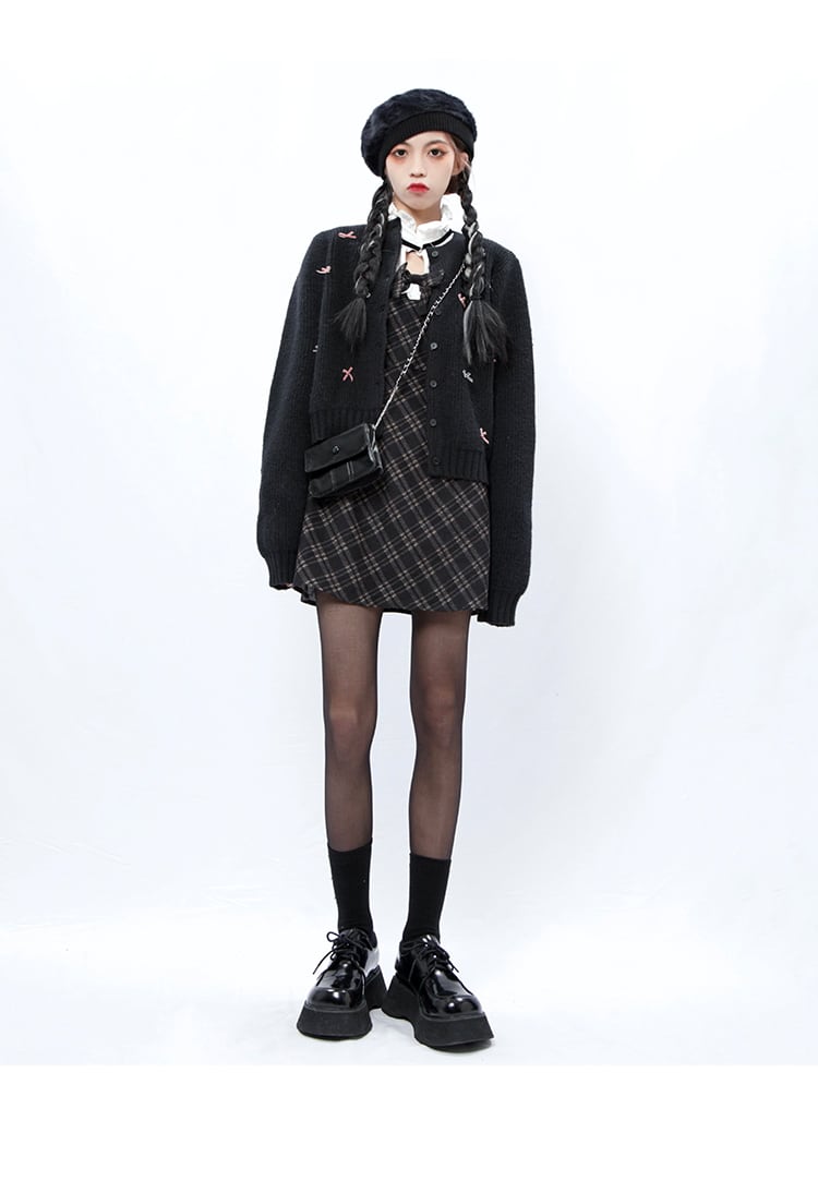 ワンピース 長袖 ミニ丈 チェック柄 フリル リボン 大人可愛い デート お出かけ 秋 春
