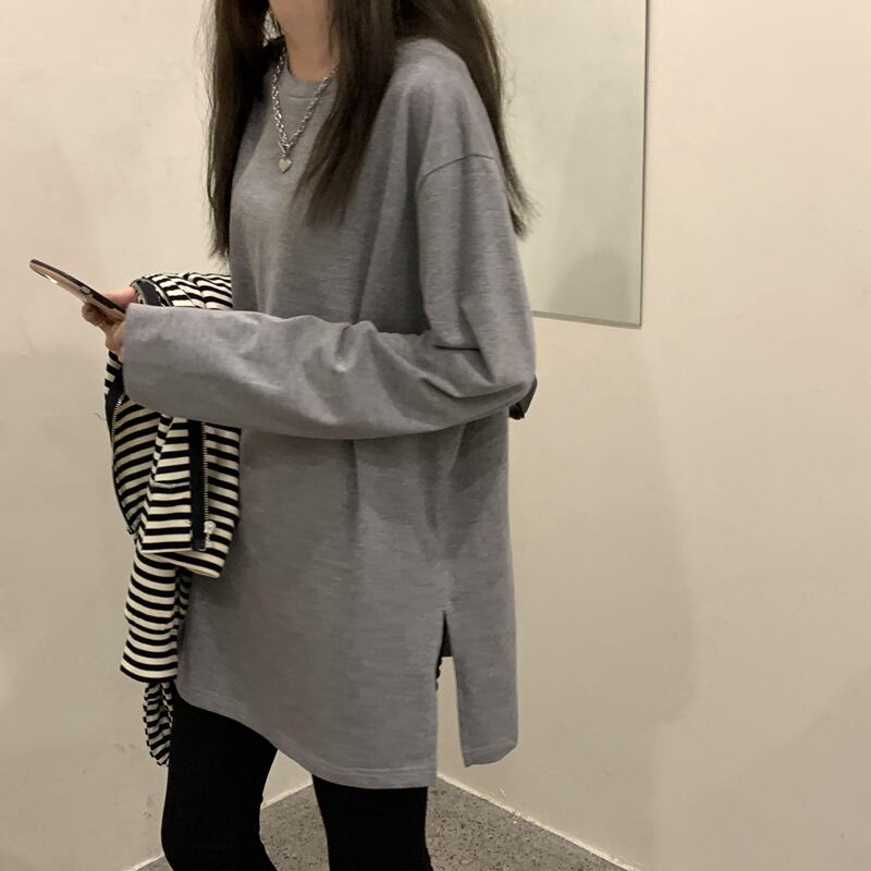 シンプルな無地デザインの長袖カットソーです♪