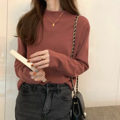 ニット セーター 長袖 シンプル 無地大人カジュアル 薄手 インナー カラバリ 秋 冬