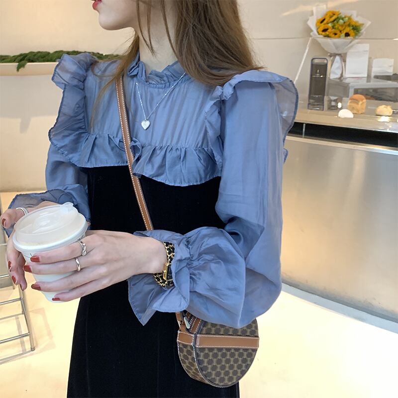 ワンピース 長袖 ミモレ丈 切り替えデザイン フリル 大人可愛い デート お出かけ 秋 春