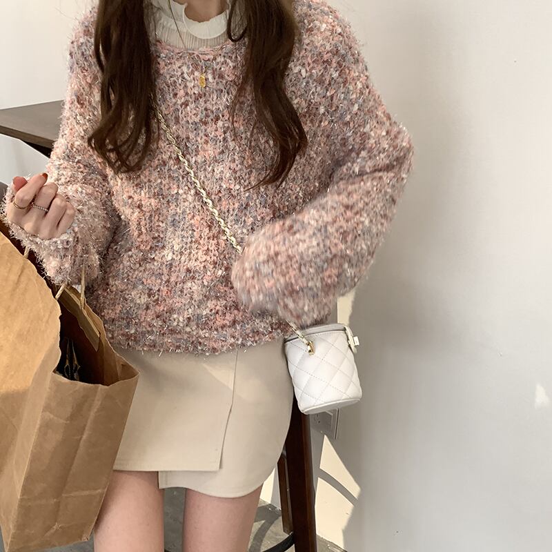 大人カジュアルなミックスカラーの長袖ニットです♪