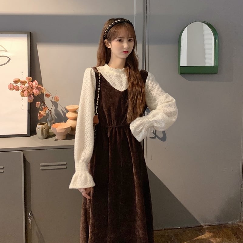 きれいめなベロア素材のミモレ丈ワンピースです♪
