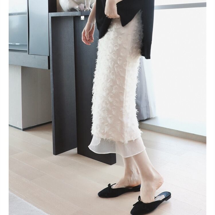 スカート ミモレ丈 タイト シフォン フェザー きれいめ 上品 シースルー デート お出かけ 春
