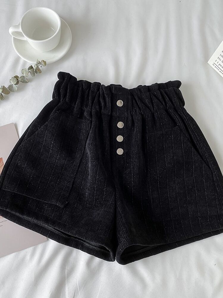 パンツ ショート ブラック 厚手 秋 冬 ボタン コーデュロイ