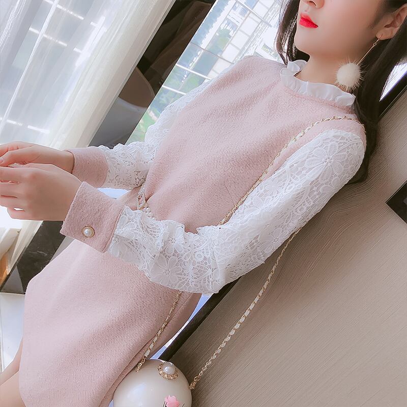 ワンピース ショート ピンク フェミニン 長袖 フリル 花柄