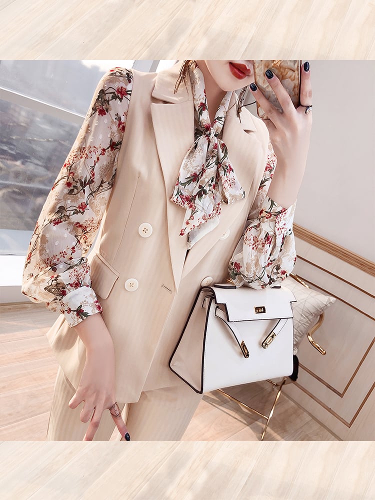セットアップ スリーピース 花柄 ブラウス 長袖 ベスト パンツ 大人可愛い きれいめ デート お出かけ