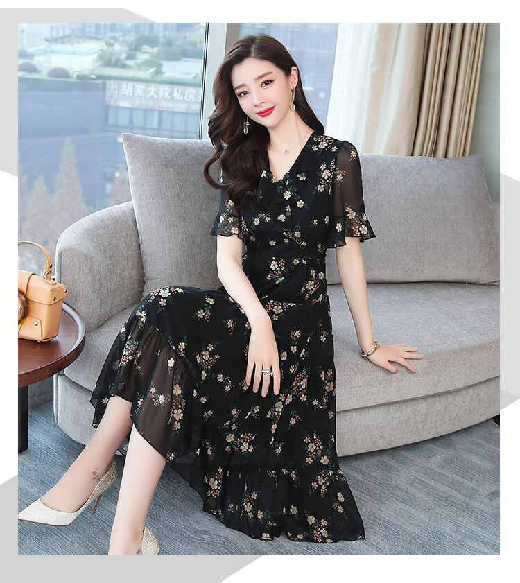 ワンピース シフォンワンピース 長袖 半袖 膝丈 フレア 小花柄 大人可愛い デート お出かけ 春