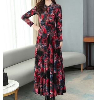 エレガントな花柄デザインのロング丈ワンピースです♪