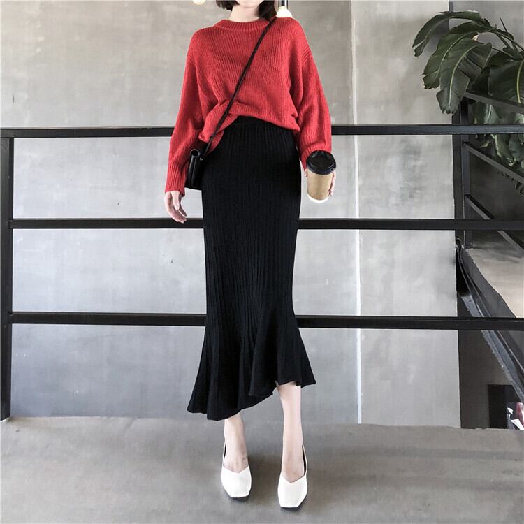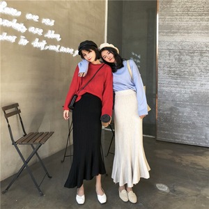 スカート ニットスカート ロング丈 プリーツ フレア タイト シンプル 無地 大人カジュアル デート