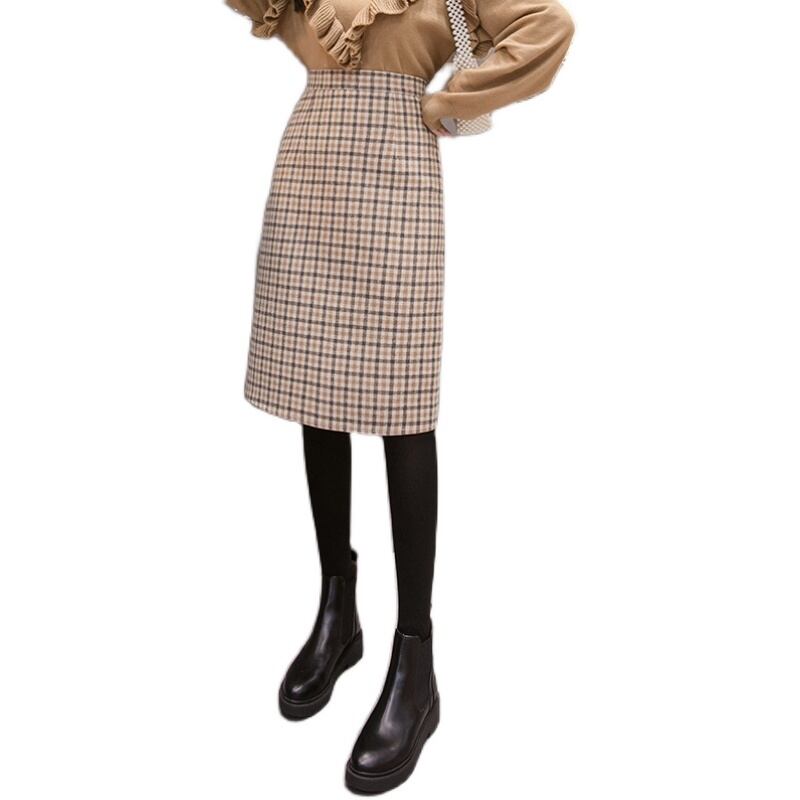 スカート ウールスカート 膝丈 タイト チェック柄 ハイウエスト シンプル 大人カジュアル トラッド
