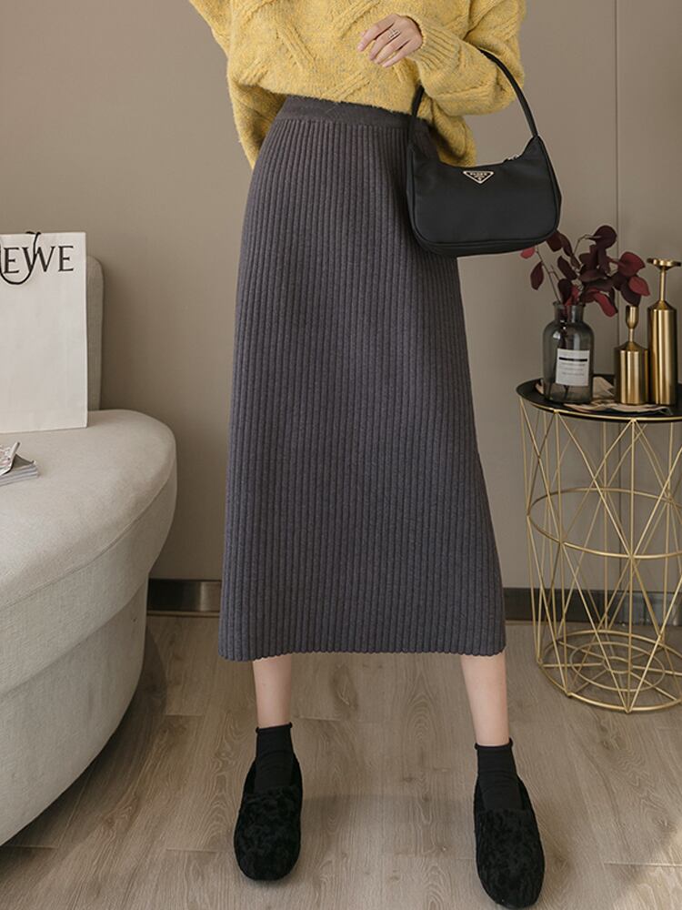 スカート ニットスカート プリーツスカート ミモレ丈 ハイウエスト シンプル 無地 大人カジュアル