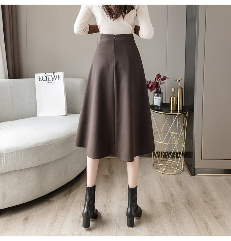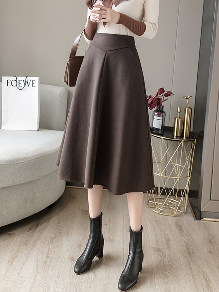 スカート フレアスカート 膝丈 ハイウエスト シンプル 無地 きれいめ 大人カジュアル デート お出かけ