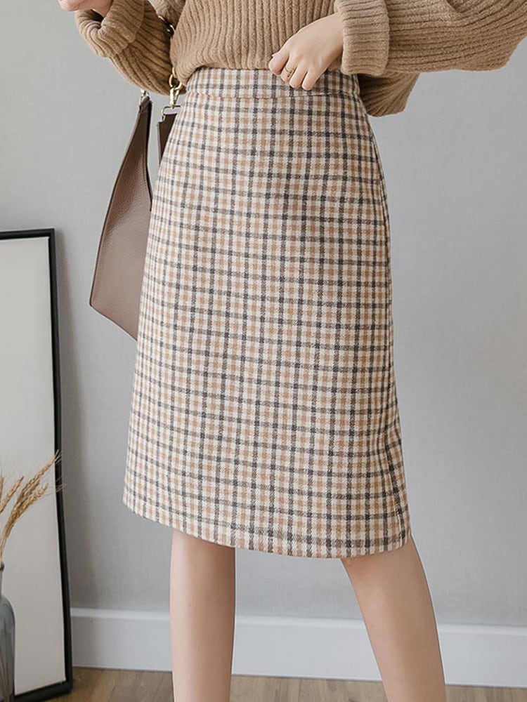 スカート ウールスカート タイトスカート 膝丈 チェック柄 トラッド 大人カジュアル お出かけ デート