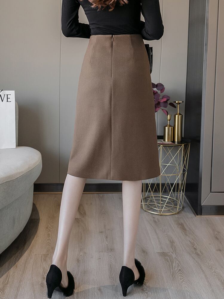 スカート ラップスカート 膝丈 パールボタン シンプル 無地 きれいめ 上品 大人可愛い デート お出かけ
