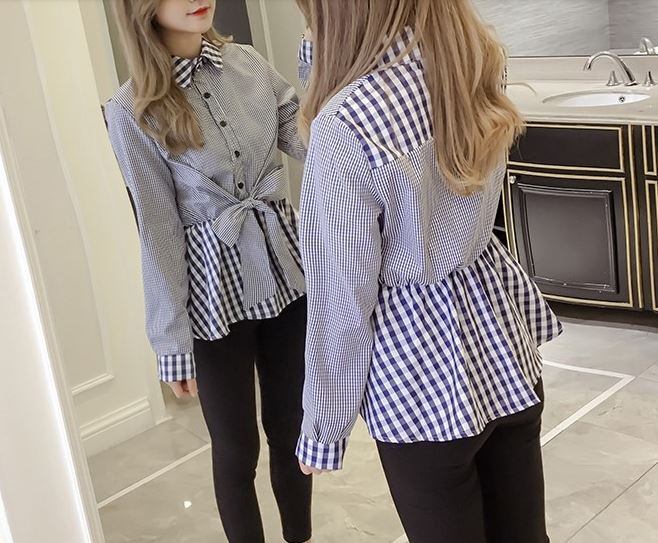 ブラウス シャツ 長袖 ギンガムチェック柄 ウエストリボン シンプル 大人カジュアル デート お出かけ