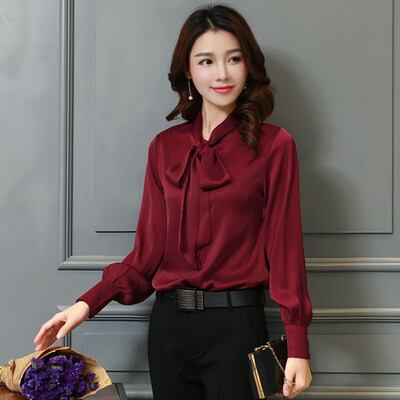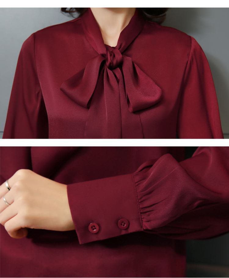 トップス シルク シャツ 長袖 ワインレッド ピンク ホワイト ブラック グレー リボン