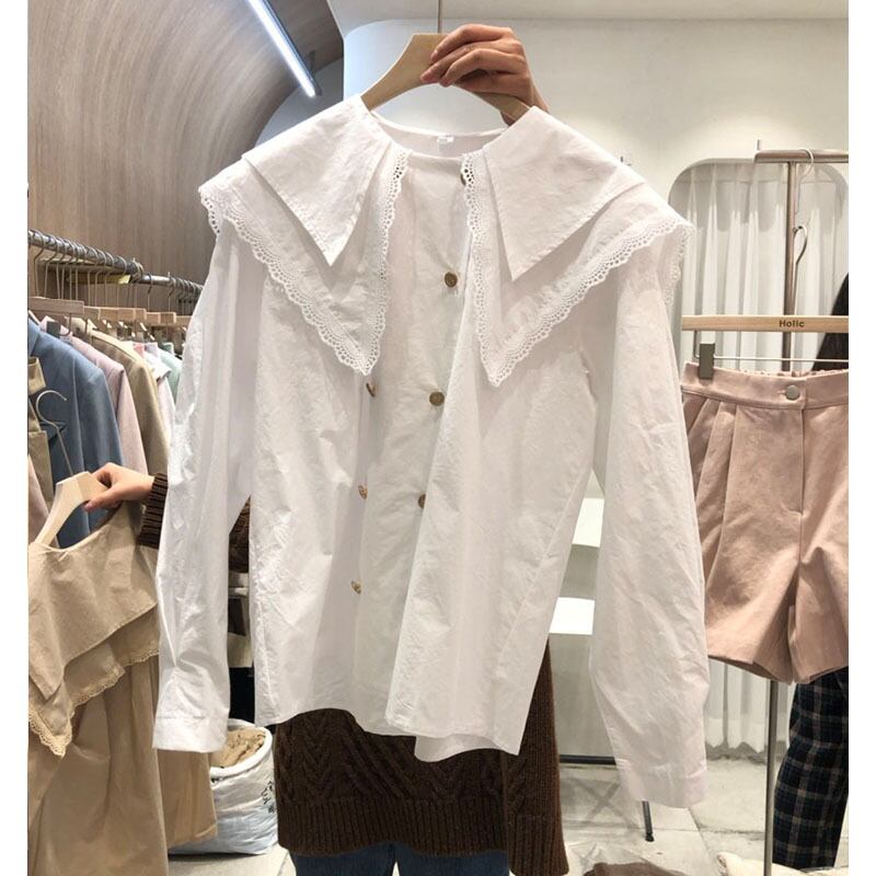 トップス ブラウス シャツ レトロ ホワイト アプリコット レース 長袖