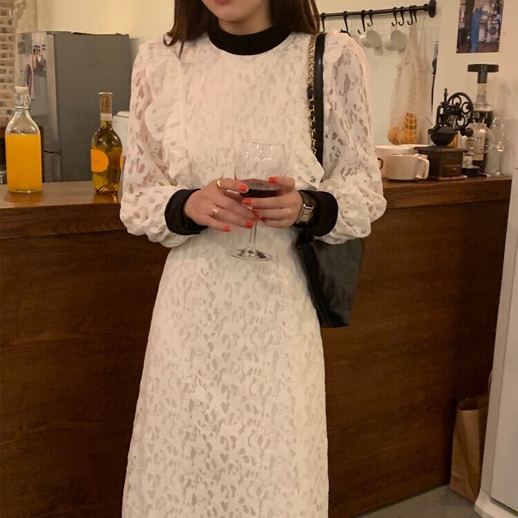 上品な総レースデザインのロング丈ワンピースです♪