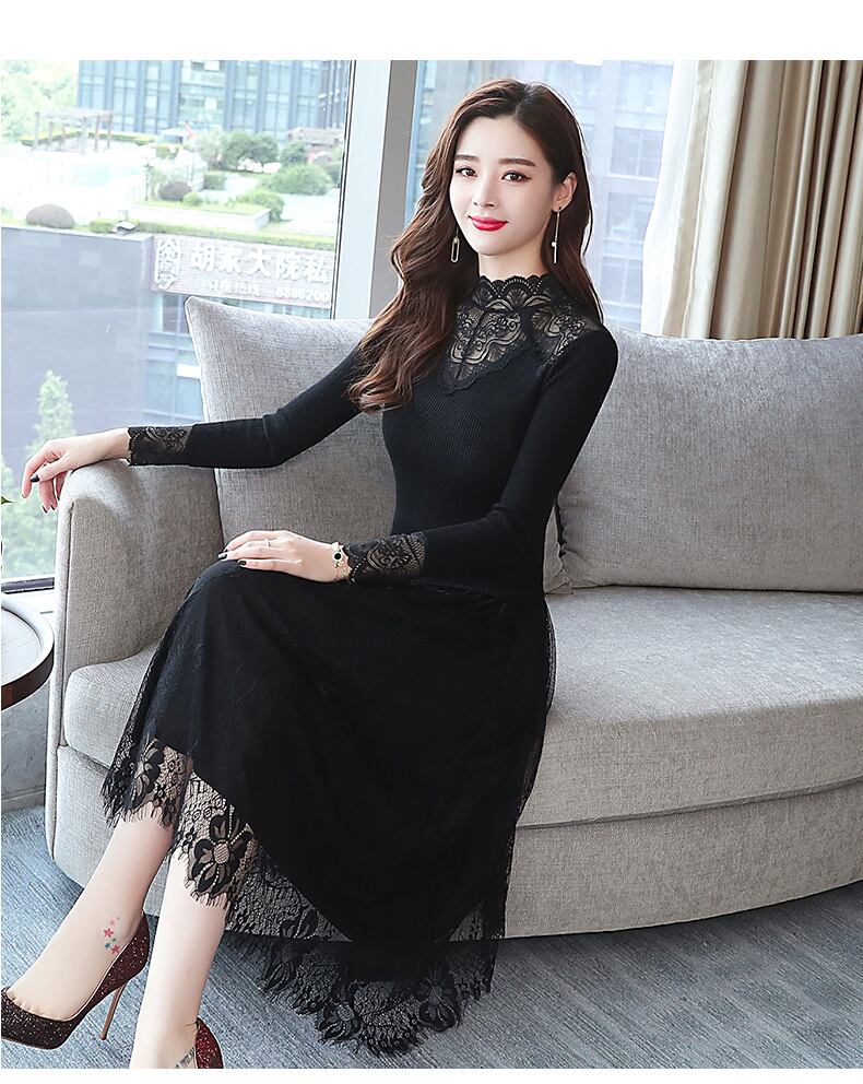 ワンピース 長袖 膝丈 レース 透け感 シンプル 無地 きれいめ 上品 デート お出かけ