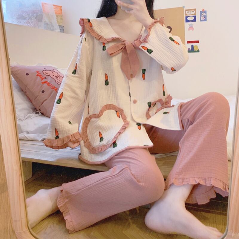 ルームウェア パジャマ 長袖 ロングパンツ キャロット リボン 大人可愛い ゆったり 春 秋