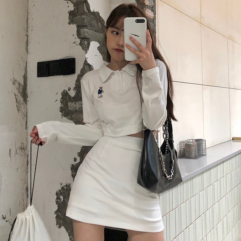 クマの刺繍の入った可愛いポロシャツとタイトなスカート♡