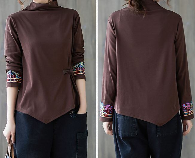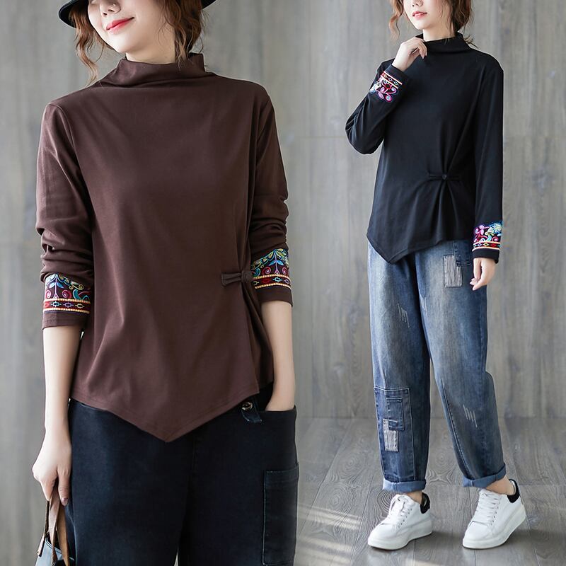 カットソー 長袖 シンプル 無地 エスニック 民族柄 大人カジュアル サイドボタン お出かけ 春