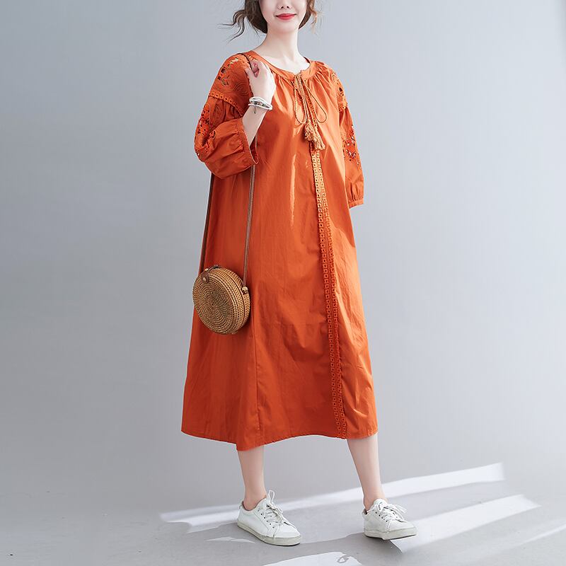 大人カジュアルな無地デザインの膝丈ワンピースです♪