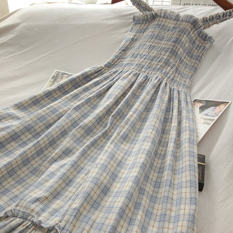 ワンピース ノースリーブ ロング丈 チェック柄 フレア ギャザーデザイン 大人カジュアル デート 春