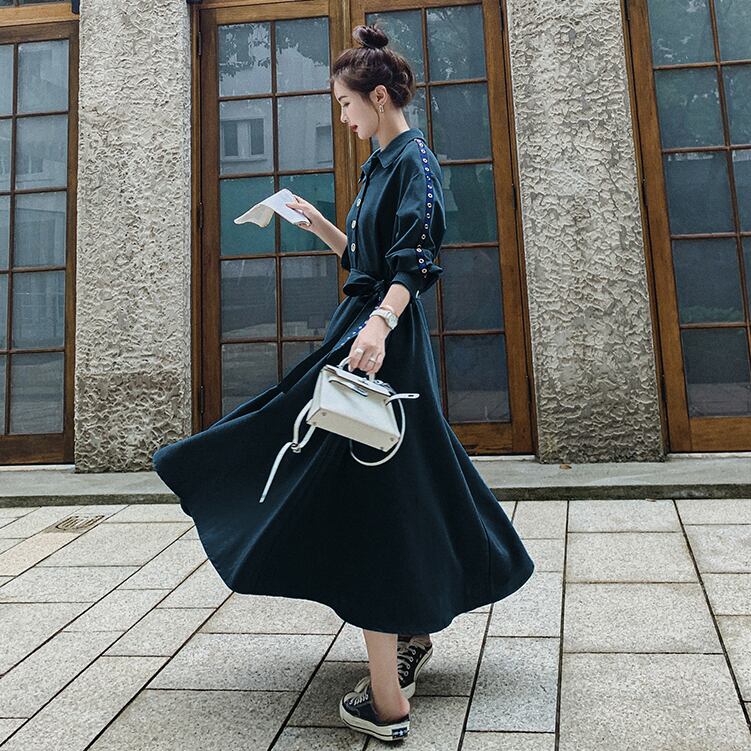 大人カジュアルな無地デザインのロング丈シャツワンピースです♪