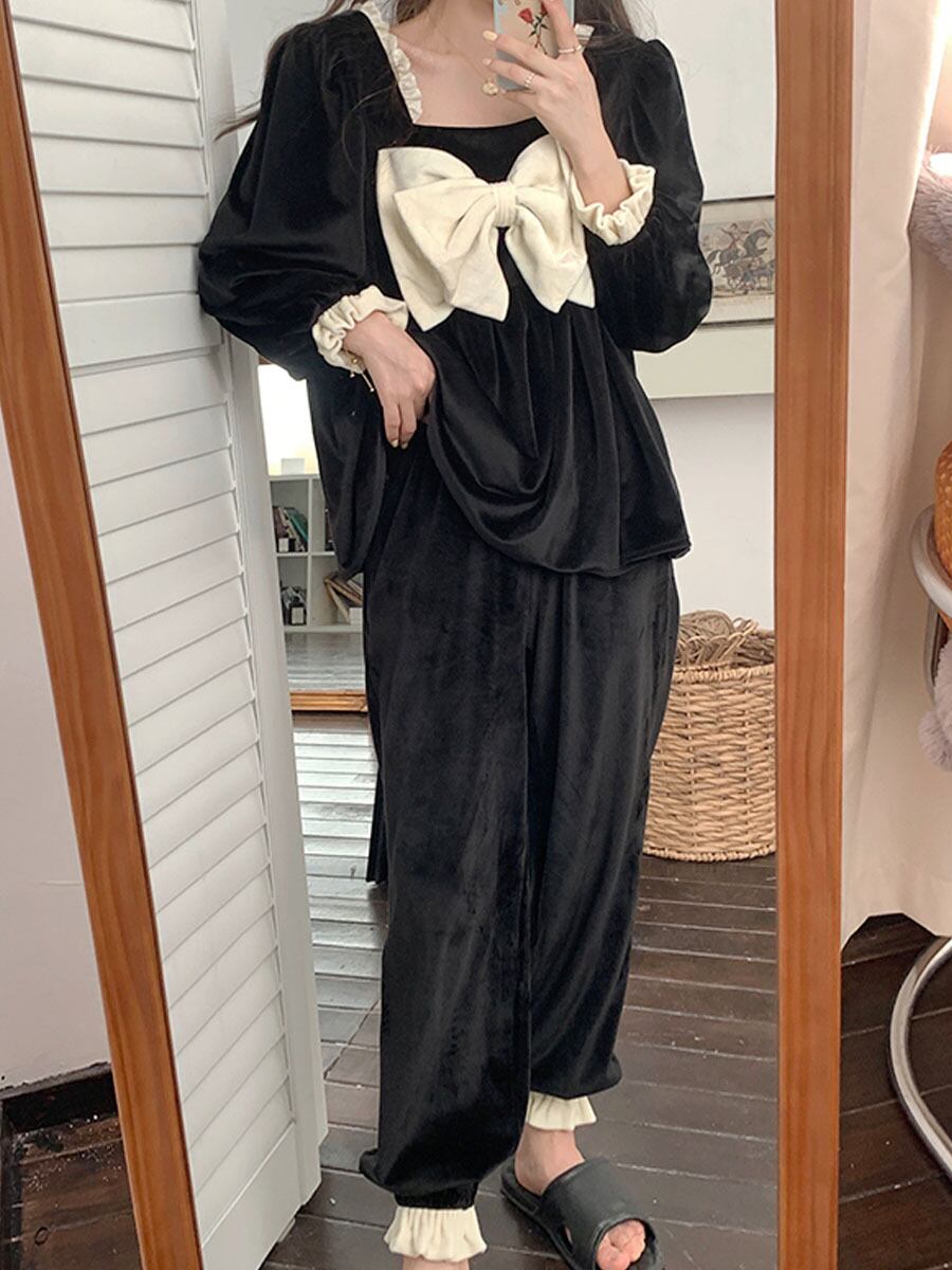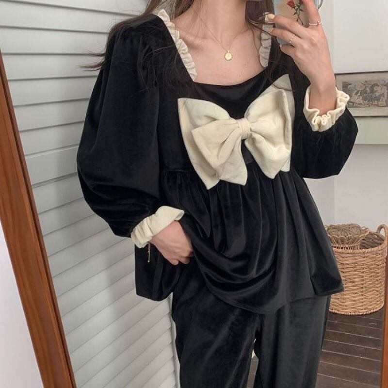 ルームウェア パジャマ セットアップ 長袖 ロングパンツ リボン 大人可愛い ゆったり キュート