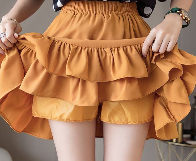 スカート ミニスカート フレア フリル ハイウエスト シンプル 無地 大人カワイ デート お出かけ