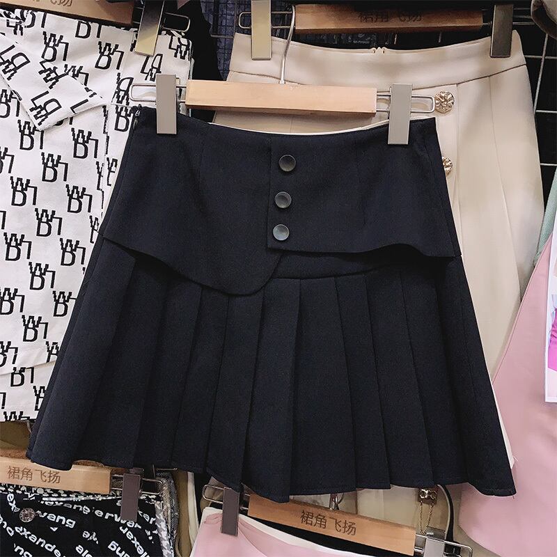 スカート ミニスカート プリーツスカート ハイウエスト フロントボタン シンプル 無地 きれいめ 大人カジュアル
