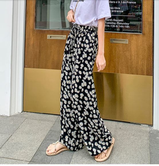 パンツ ワイドパンツ ハイウエスト ウエストゴム 小花柄 大人可愛い デート お出かけ 春