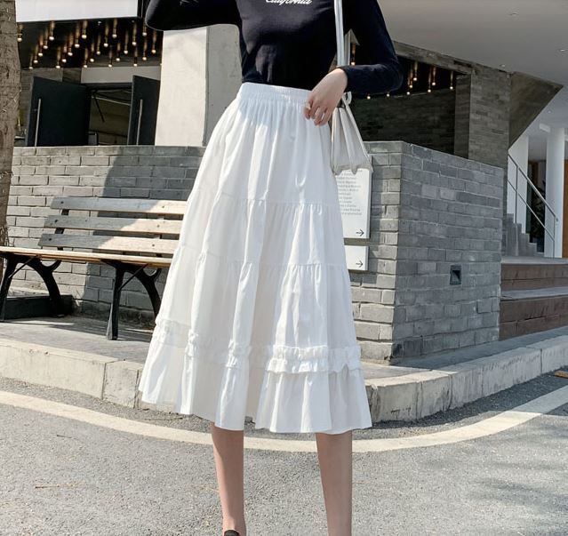 スカート フレアスカート ハイウエスト 膝丈 ウエストゴム シンプル 無地 大人カジュアル 春