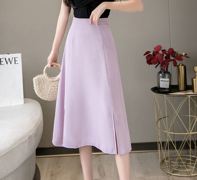 スカート フレアスカート 膝丈 Aライン スリット シンプル 無地 きれいめ 上品 デート お出かけ 春