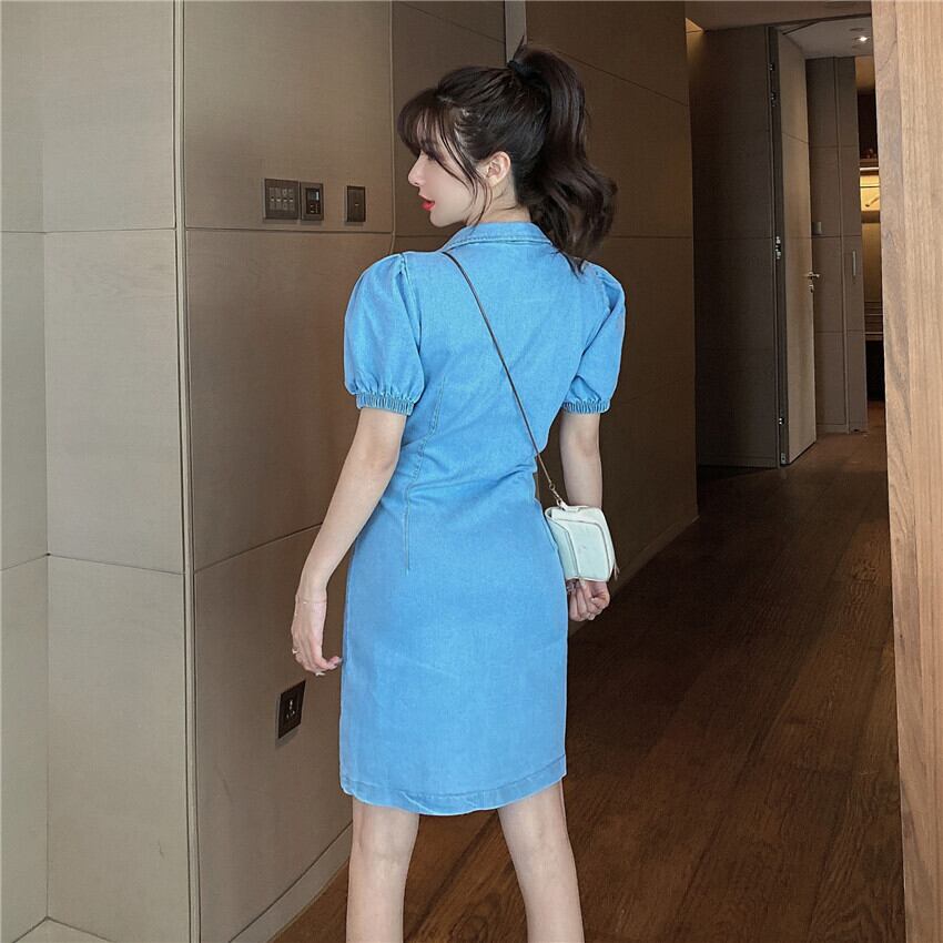 ワンピース ひざ上 シャツ デニム 半袖 夏 ブルー
