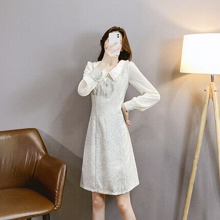 ワンピース おしゃれ 膝丈 長袖 フェミニン フォーマル 襟 上品 細身