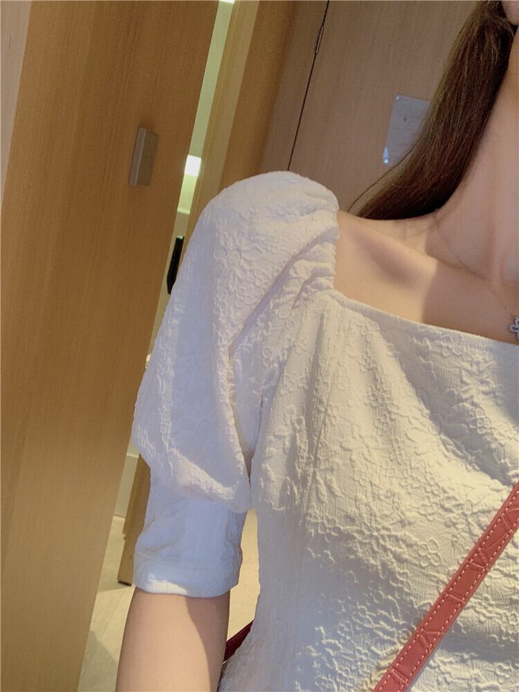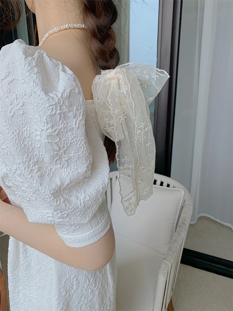 ワンピース 半袖 ミニ丈 フレア パフスリーブ コットンレース きれいめ 大人可愛い デート 春