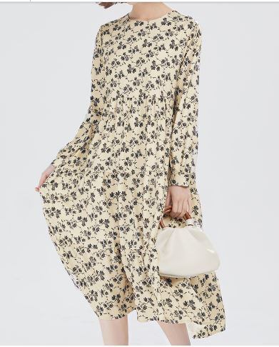 ワンピース 長袖 ミモレ丈 フレア 小花柄 大人可愛い レトロ デート お出かけ 春