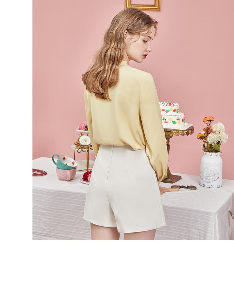 ブラウス シフォンブラウス 長袖 Vネック パールモチーフ シンプル 無地 きれいめ 上品 春